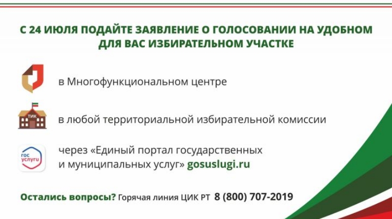 24 июля начался прием заявлений для голосования по месту фактического нахождения на выборах депутатов Госсовета Республики Татарстан.