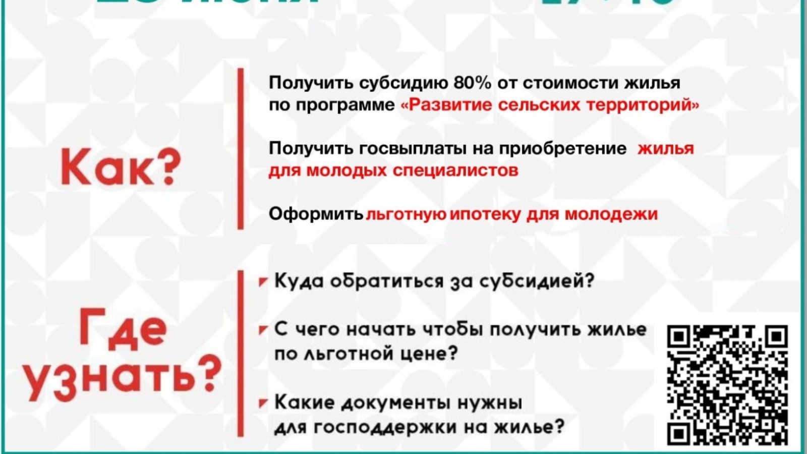В ходе прямого эфира #ЖильёМолодымРТ участники смогут получить ответы экспертов по всем вопросам, а также информацию которая поможет быстро и без проблем воспользоваться господдержкой в получении субсидии и льгот в приобретении жилья.