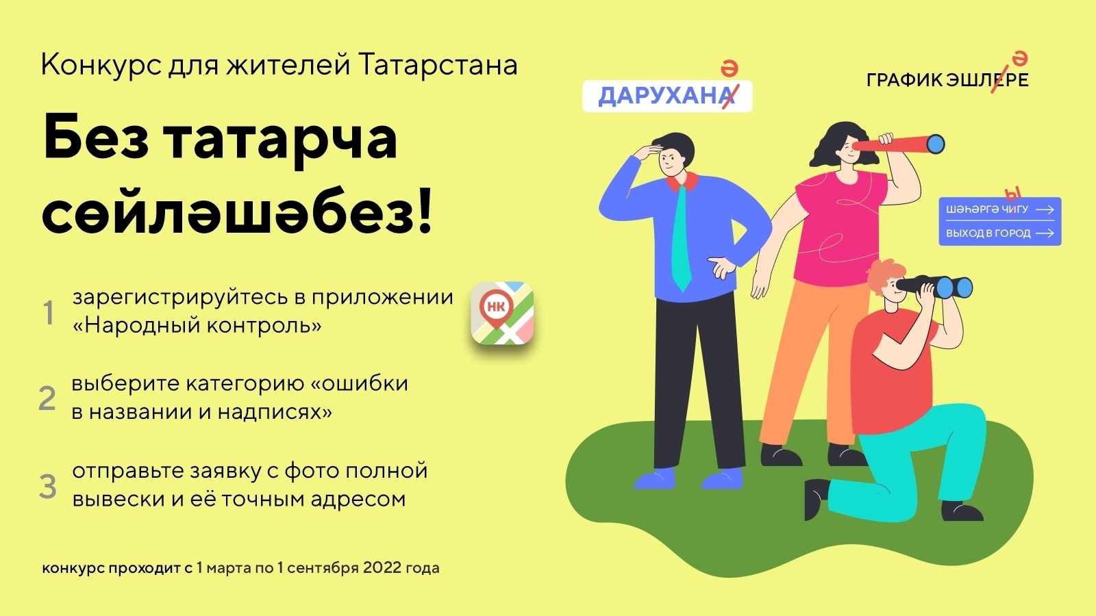 Конкурс по привлечению жителей Республики Татарстан к выявлению ошибок в названиях и надписях на татарском языке на вывесках, информационных табличках, топографических обозначениях, дорожных указателях и аншлагах жилых домов на базе государственной информационной системы Республики Татарстан