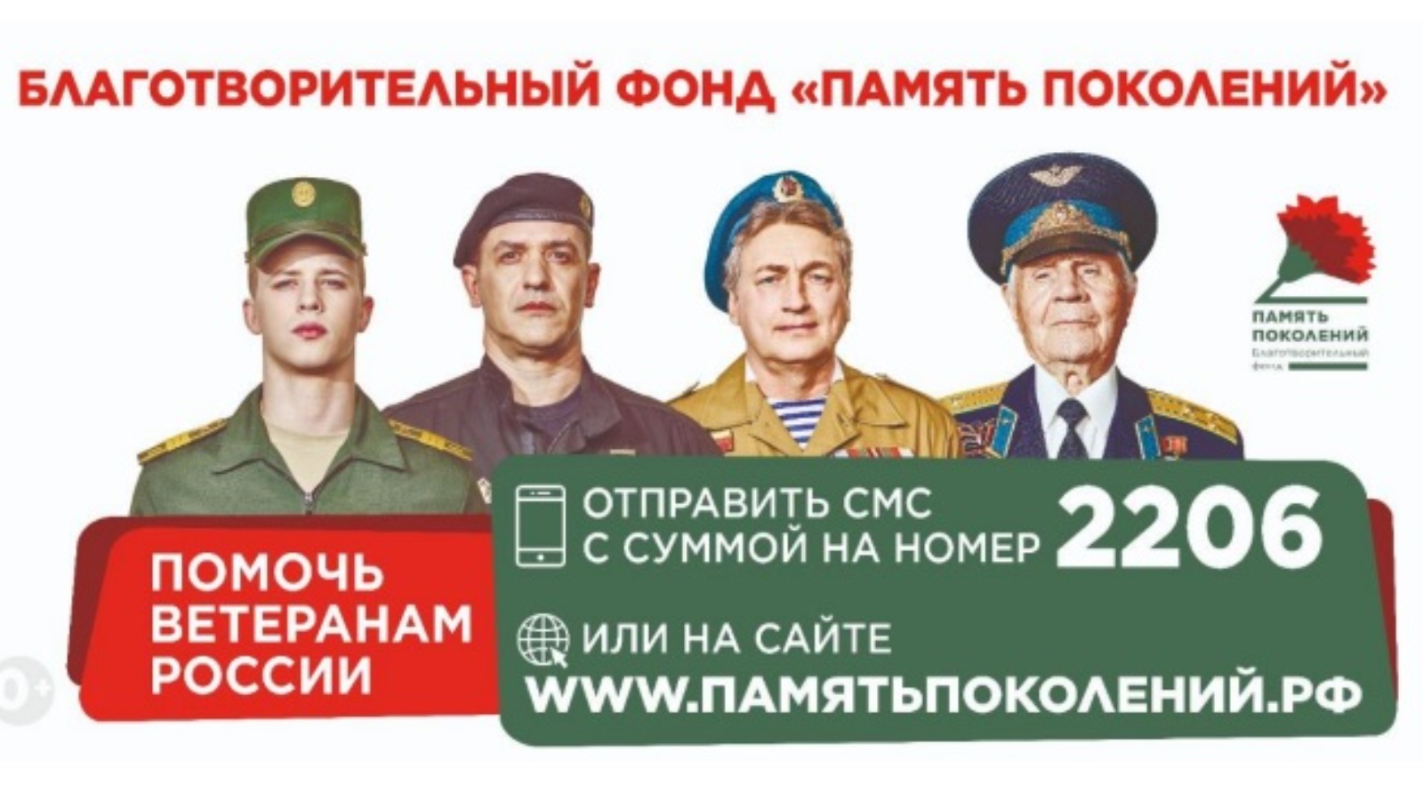 Благотворительный фонд «ПАМЯТЬ ПОКОЛЕНИЙ» – некоммерческая организация, оказывающая медицинскую помощь ветеранам боевых действий. Миссия Фонда - объединить в деле помощи ветеранам всех граждан России без исключения, независимо от их возраста, пола, социального положения, дохода, политических, религиозных и других взглядов.