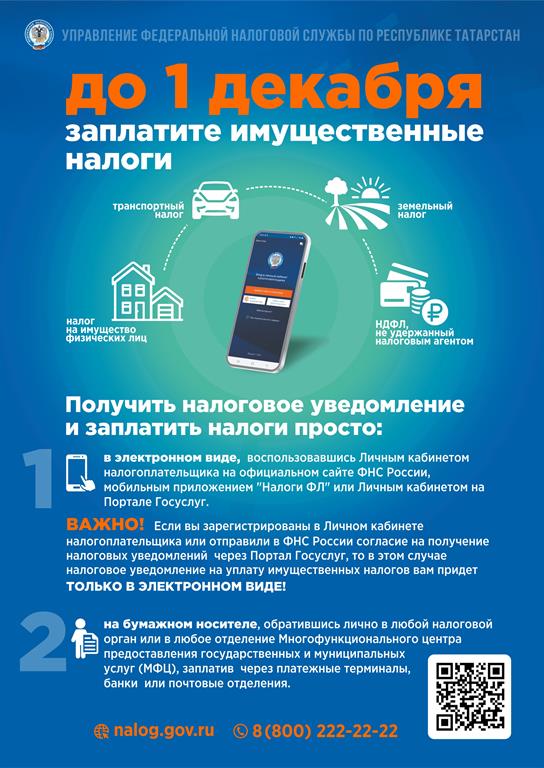В своих налоговых уведомлениях жители республики увидят реквизиты для быстрой уплаты налогов, а именно уникальный идентификатор начислений (УИН), штрих-код и QR-код. Уплатить начисленные налоги за несколько минут можно любым удобным способом, воспользовавшись Личным кабинетом на сайте ФНС России, мобильным приложением «Налоги ФЛ» или Личным кабинетом на Портале Госуслуг.
