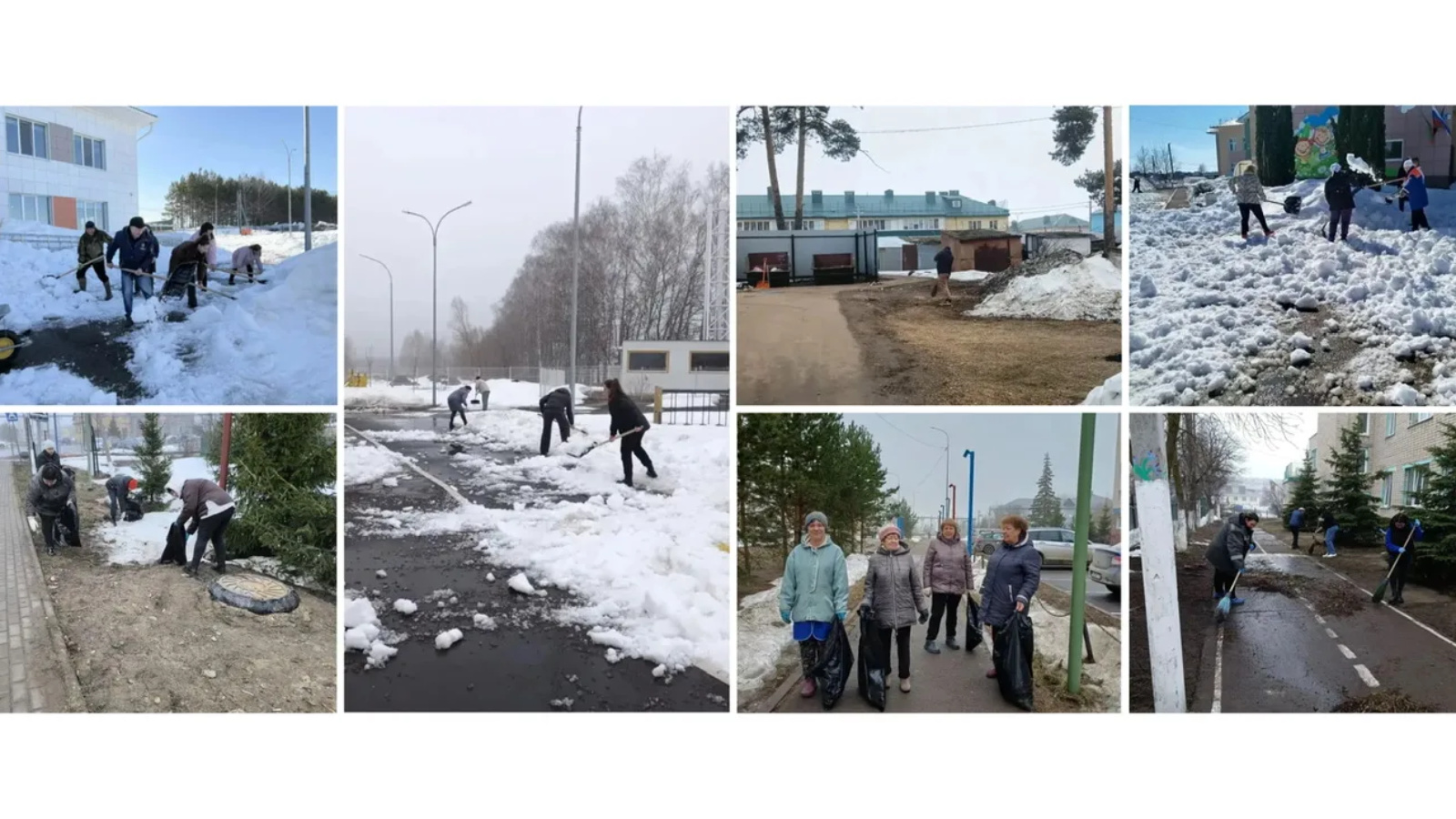 На фото: субботники в разных уголках нашего района.