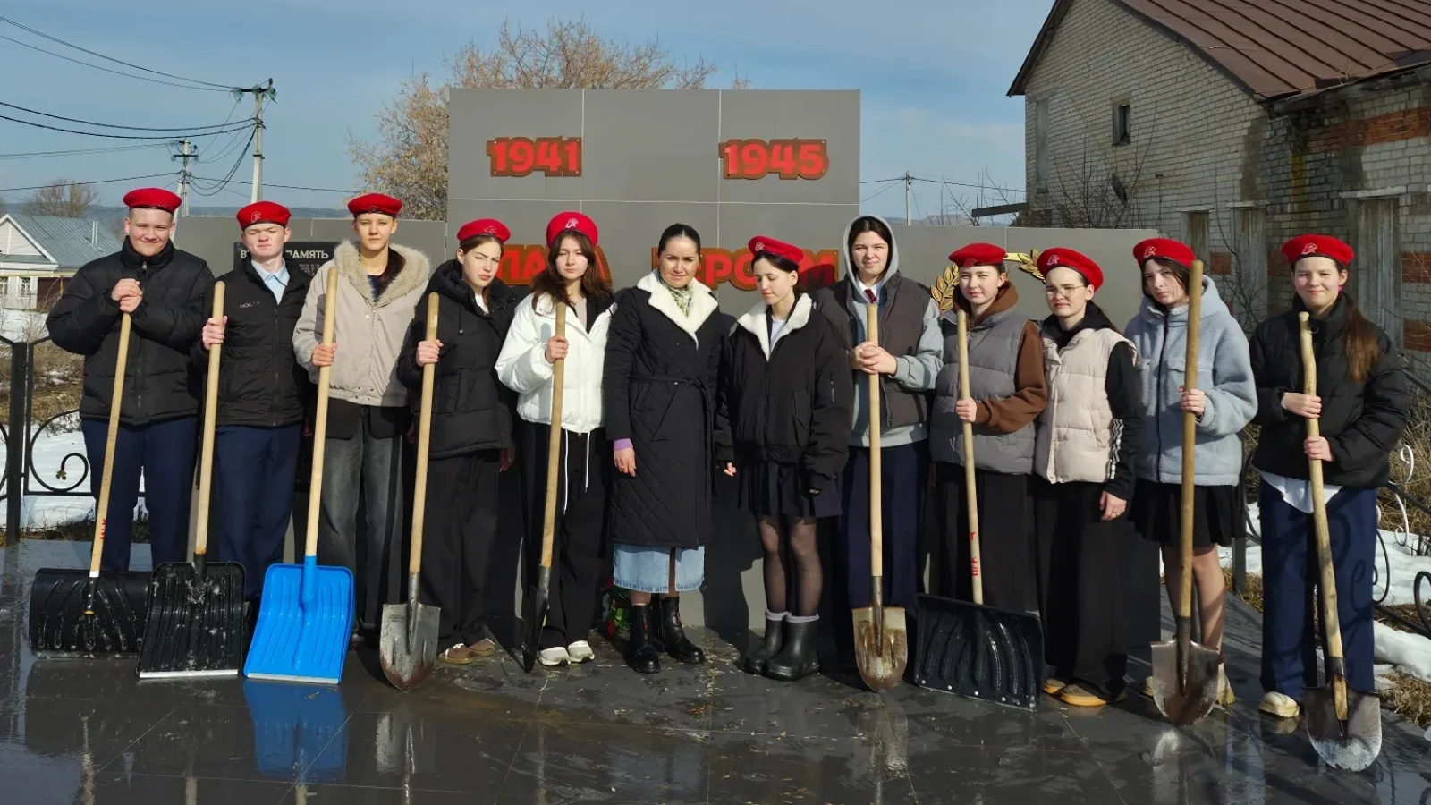 Ребята очистили мемориал от снега, навели порядок на прилегающей территории и почтили память павших героев минутой молчания.