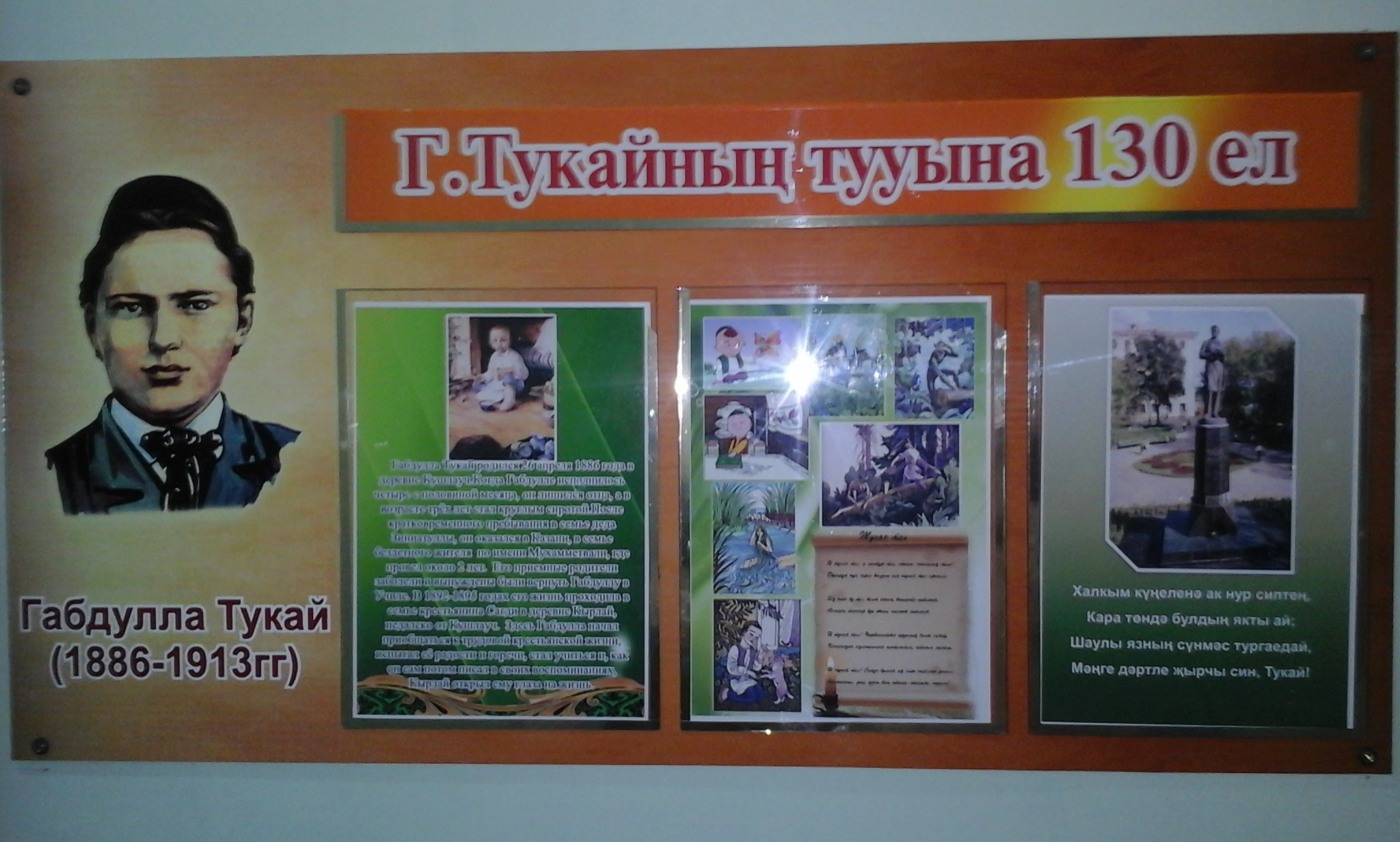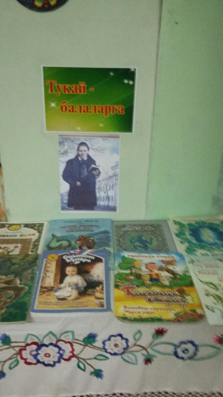 Апрель посвящен 130 летнему юбилею великого татарского поэта Габдуллы Тукая. Воспитатель по обучению татарского языка Куркачинского детского сада "Ласточка" Гулюса Хафизова оформила стенд по творчеству поэта. Так же была организована выставка книг по произведениям Г.Тукая.