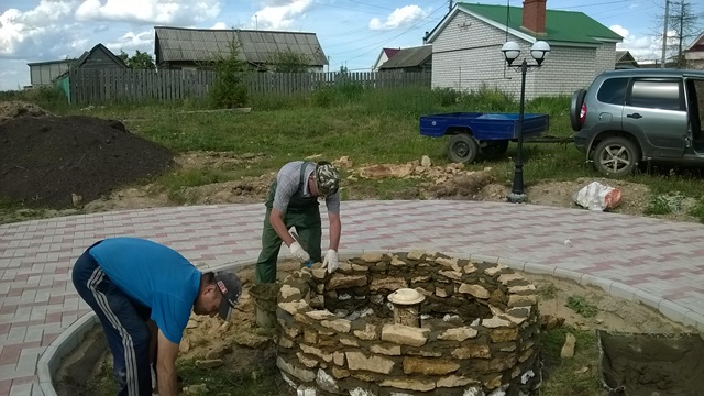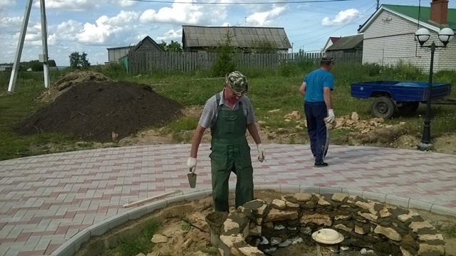 Идет работа по благоустройству территории СДК дер.Средний Алат. Здесь будет парк культуры и отдыха. Работники СДК Зайнуллин Р.А,, Вафин Н.А. строят фонтан.
