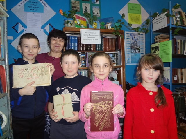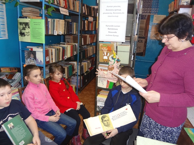 Китапханәче һәм мәдәният йорты директоры балаларны шагыйрьнең иҗаты һәм тормыш юлы белән таныштырып үттеләр. Шулай ук балалар үзләренең яраткан шигырьләрен сөйләделәр һәм китапханәдә оештырылган "Каләмне корал итеп " дип исемләнгән китап күргәзмәсе белән таныштылар.